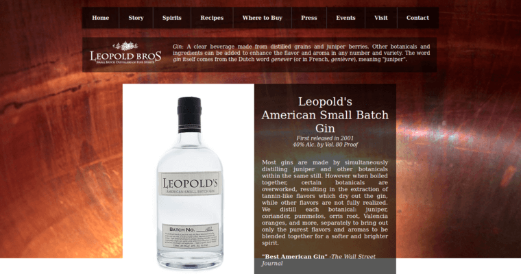 London Dry Gin – Leopold’s Gin For gin to be considered gin in the past, it needed to have juniper as the dominant flavor. For many years, the London Dry juniper-flavored gin was considered the true gin. Some other botanicals such as orris root, cassia bark, bitter orange, angelica, coriander, and liquorice were a much smaller part of the mix. Leopold’s London Dry Gin goes great when mixed with outstanding tonic water. Leopold’s Bros. has a distillery in Denver. They make their gin a bit differently than the older style of gin. They make small batches and distill each ingredient separately including the juniper. This method produces a more balanced gin drink. The product is hand- bottled and hand- labeled, giving a personal touch to the product. Zested oranges and mild grapefruit are added along with other ingredients. This gin makes a great tasting gin for Martinis.